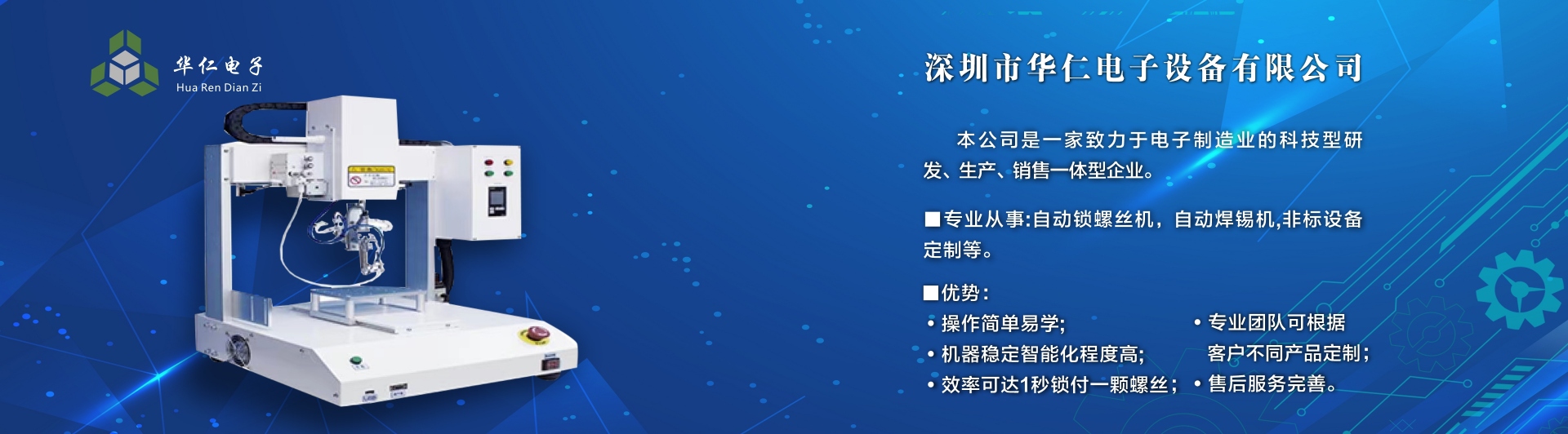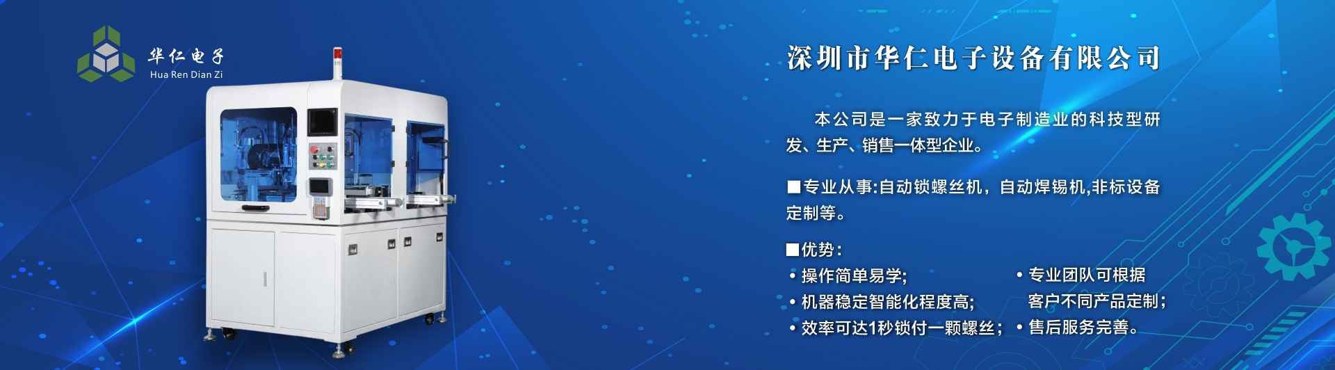 深圳市華仁電子設備有限公司是一家致力于電子制造業周邊設備的科技型研發(fā)、生產、銷售一體的企業,專業從事:自動鎖螺絲機;自動焊錫機;非標設備定制機等,公司長期以來在行業中積累了豐富的經驗,擁有專業的研發(fā)、技術、銷售支持工程團隊、各高級技術人才為客戶提供優(yōu)質產品和服務,同時不斷吸取國內外先進技術,更準確及時地為客戶提供優(yōu)質,性價比高的產品、公司以專業的售前、售中、售后服務贏得了客戶的信賴和好評,為客戶提供先進自動化設備一體式解決方案、